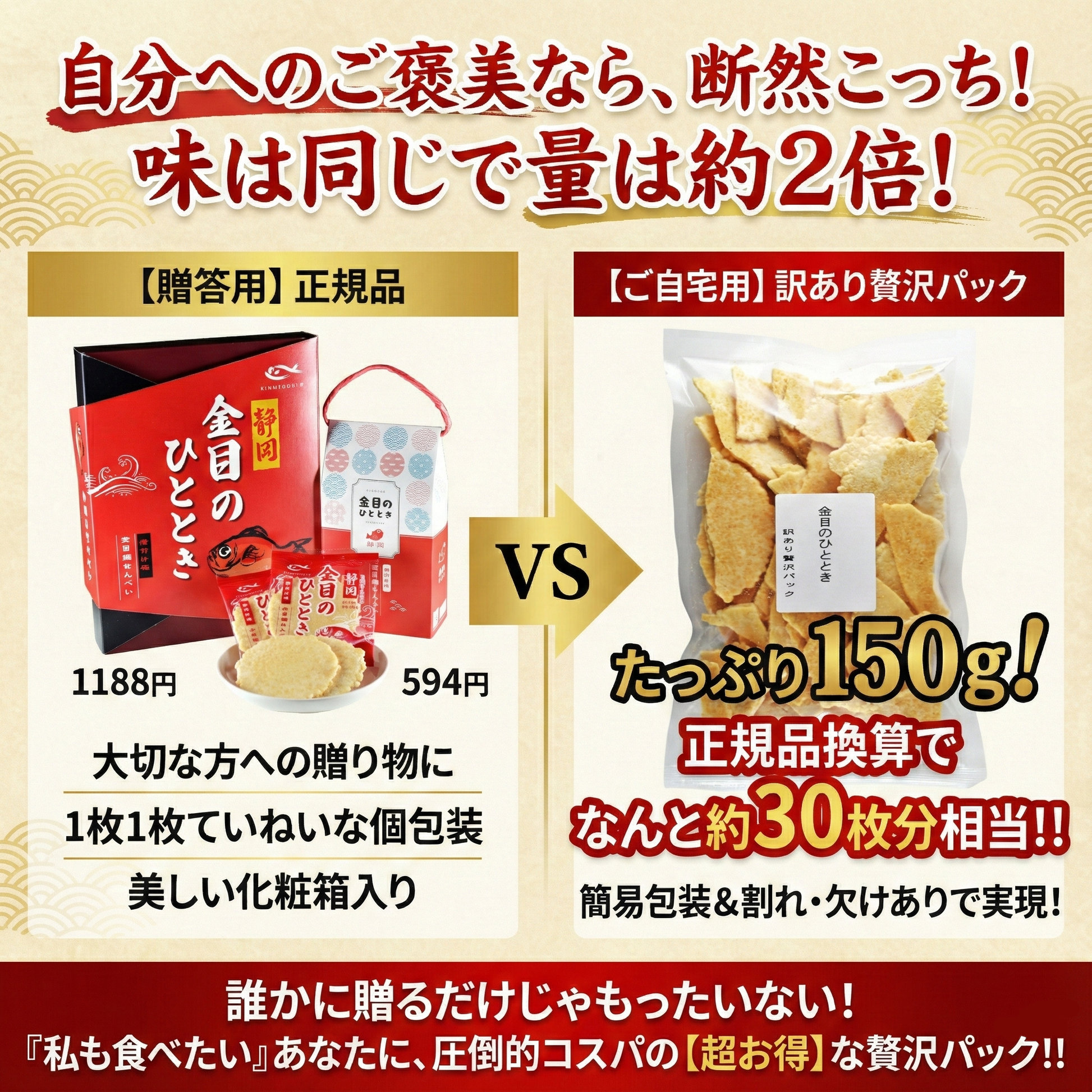 “割れせん”を【ネット限定】&【簡易包装】で